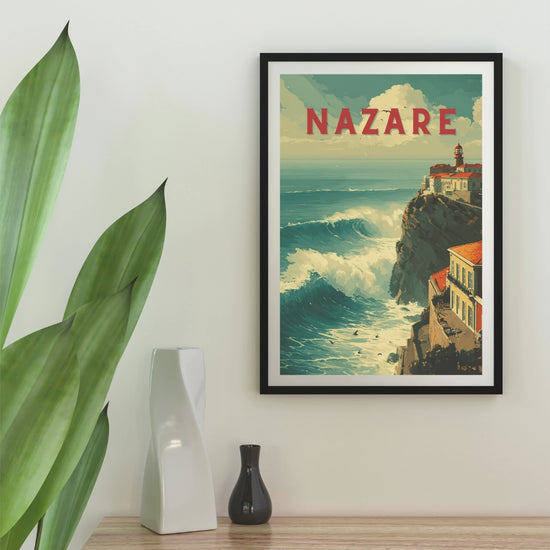 Bring a touch of vintage costal Portuguese charm into your home with this Nazare, Portugal 'Big Wave' printable poster. Designed for easy at-home or professional printing, this digital file lets you decorate instantly or provide the perfect last minute gift — no waiting, no shipping costs.